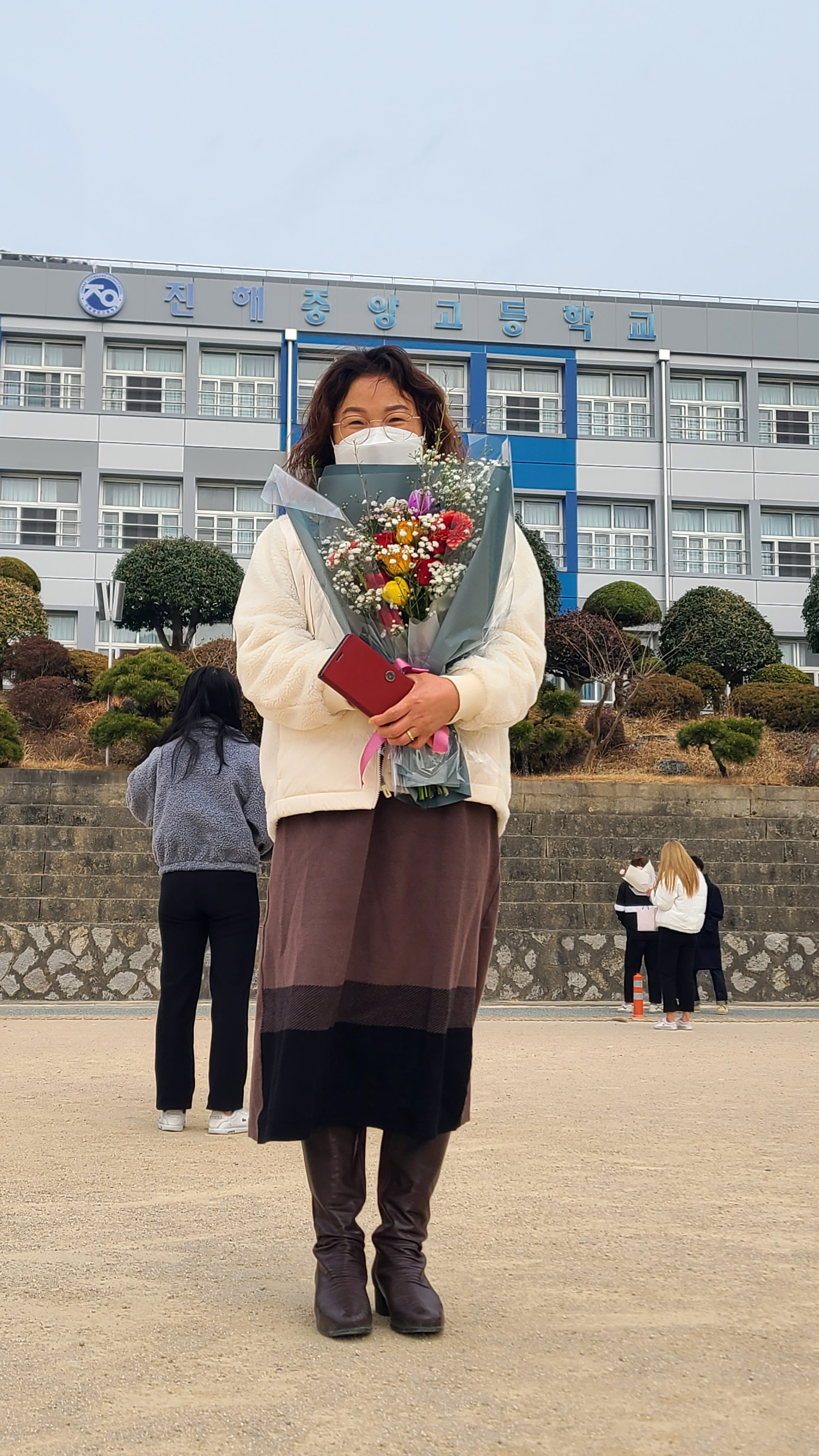 열 명 정도되는 사람들이 함께 있다가 꽃을 사고 떠들면서 교문을 향해 가니 그나마 졸업식이다.