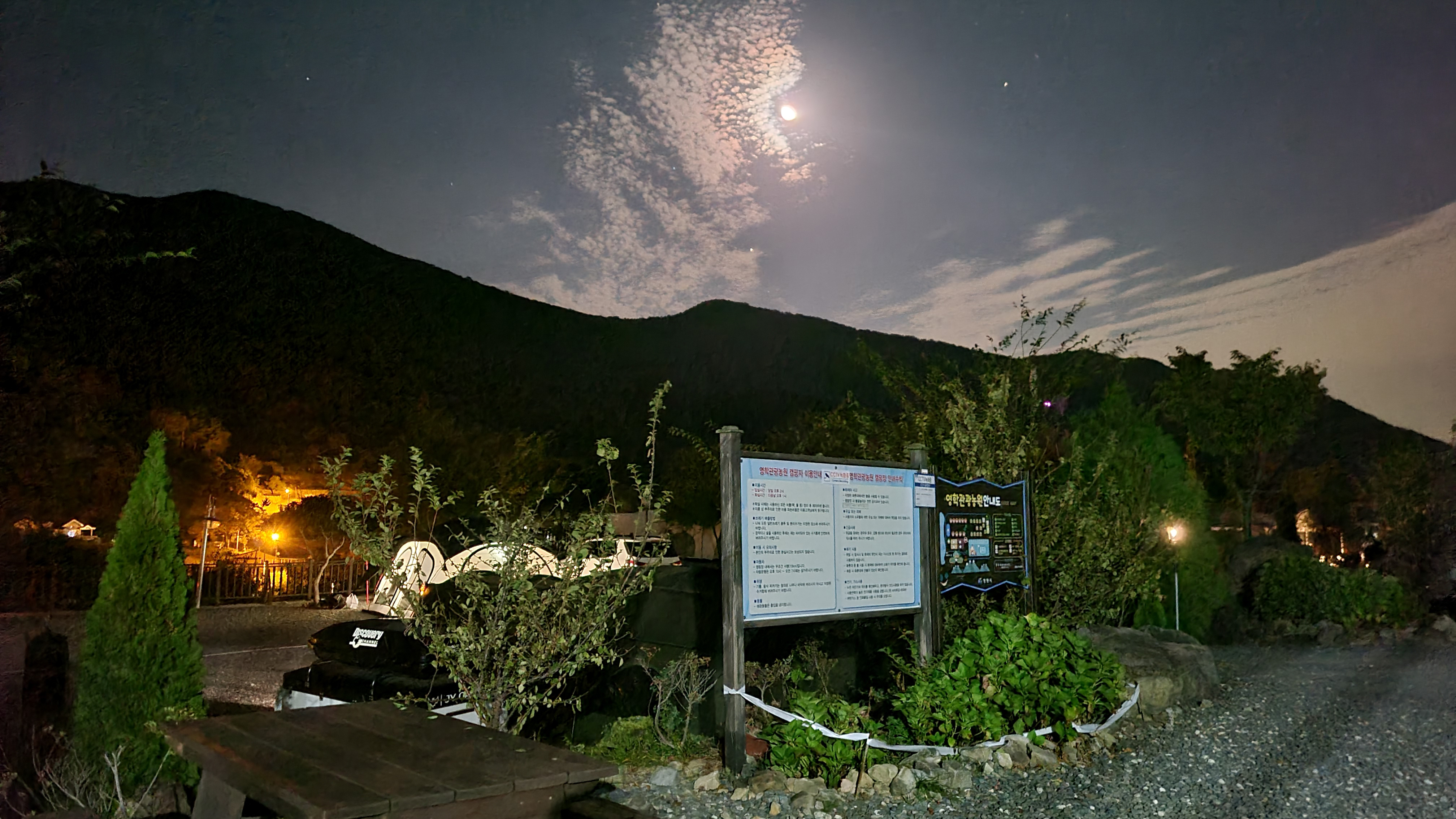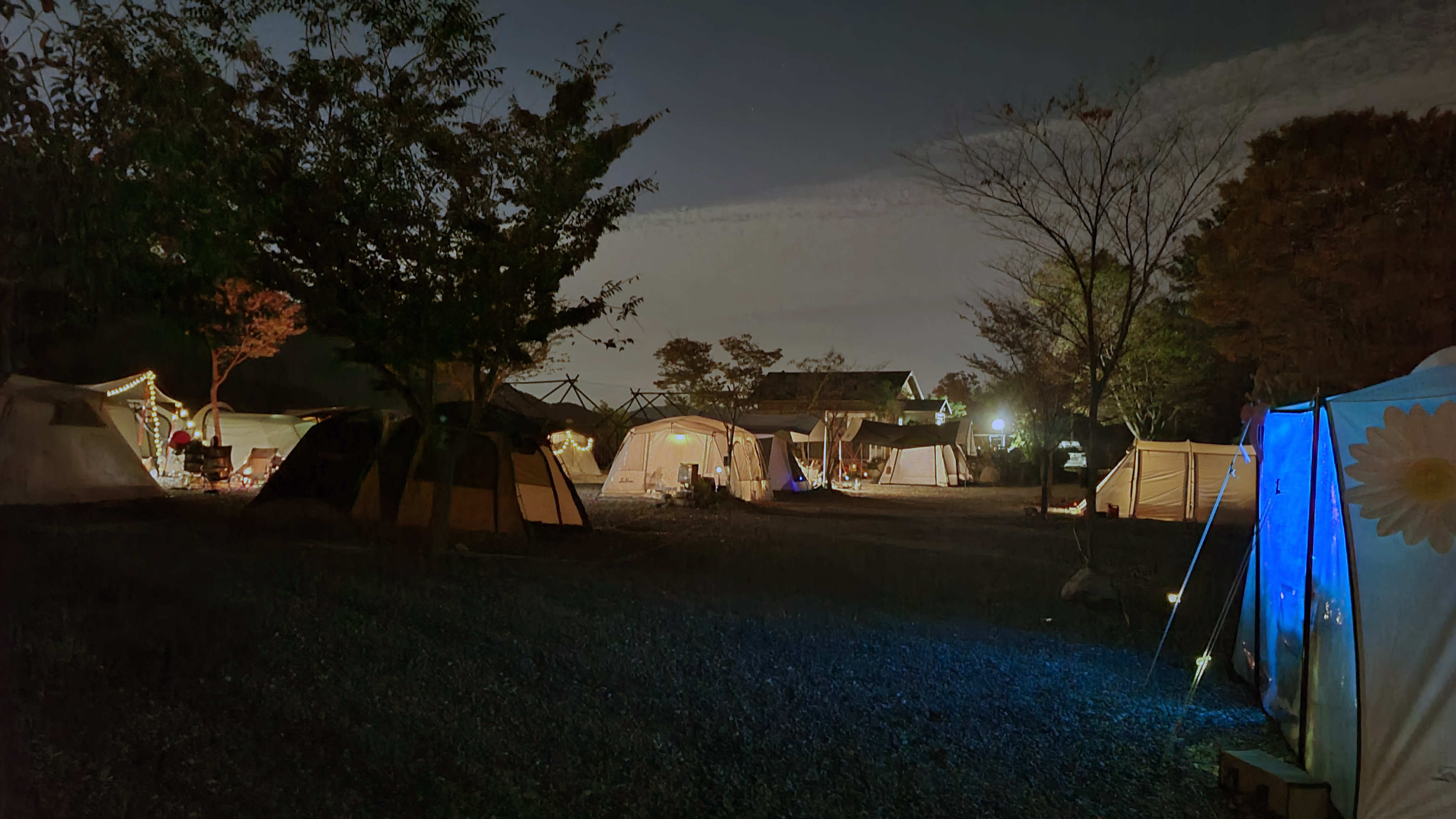 편안한 잠자리를 위해 정리를 하고 양치질과 간단하게 씻으러 가면서 어둠속의 캠핑장 모습을 눈에 담았다.