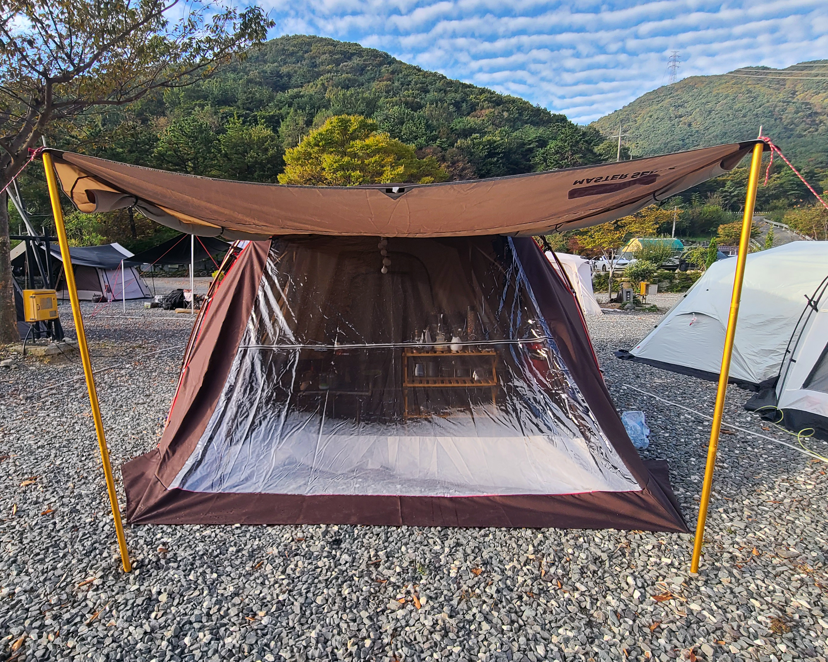 설치하기가 조금 힘들다는 것이지만 몸에 익으면 다른 거실형 텐트의 설치 시간과 비슷할 것 같다.