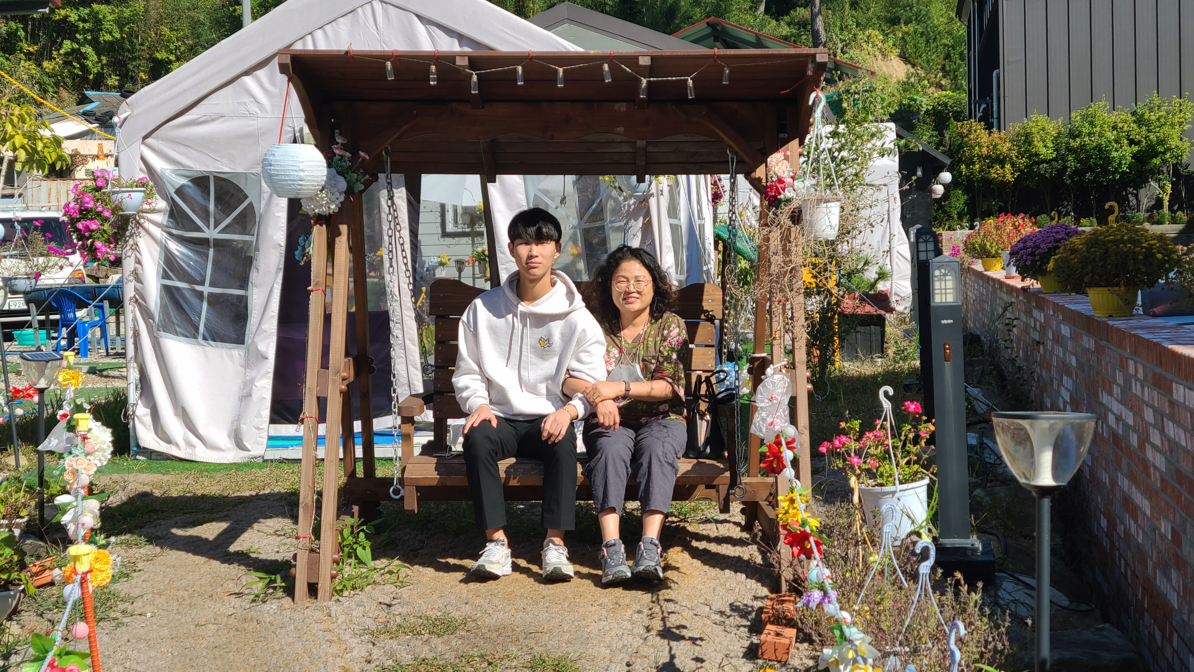 다 먹고 나서 주차장에 있는 포토존이 있어 엄마와 함께 사진을 촬영했다.