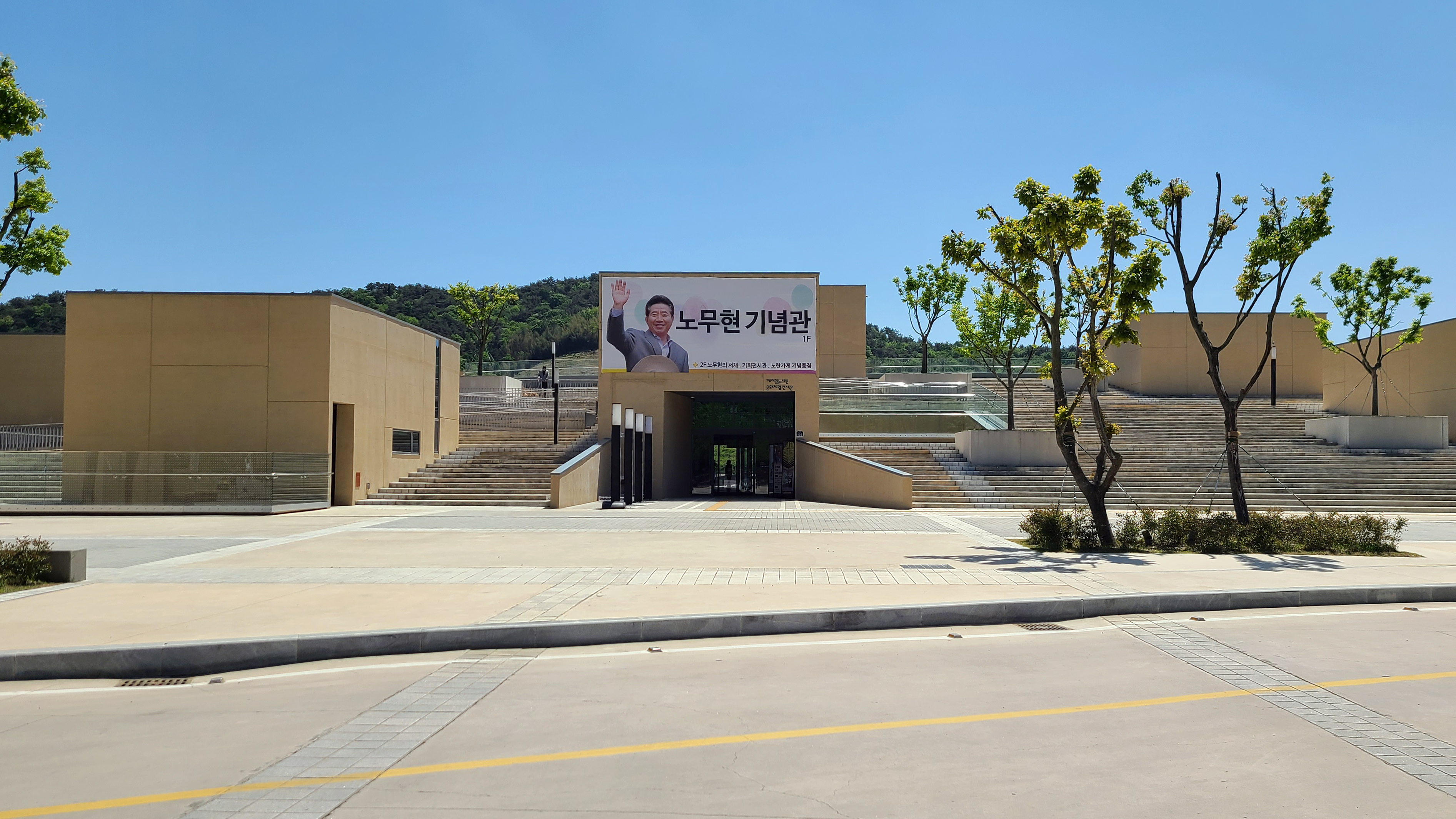 노무현 대통령의 묘역과 기념관이 보인다.