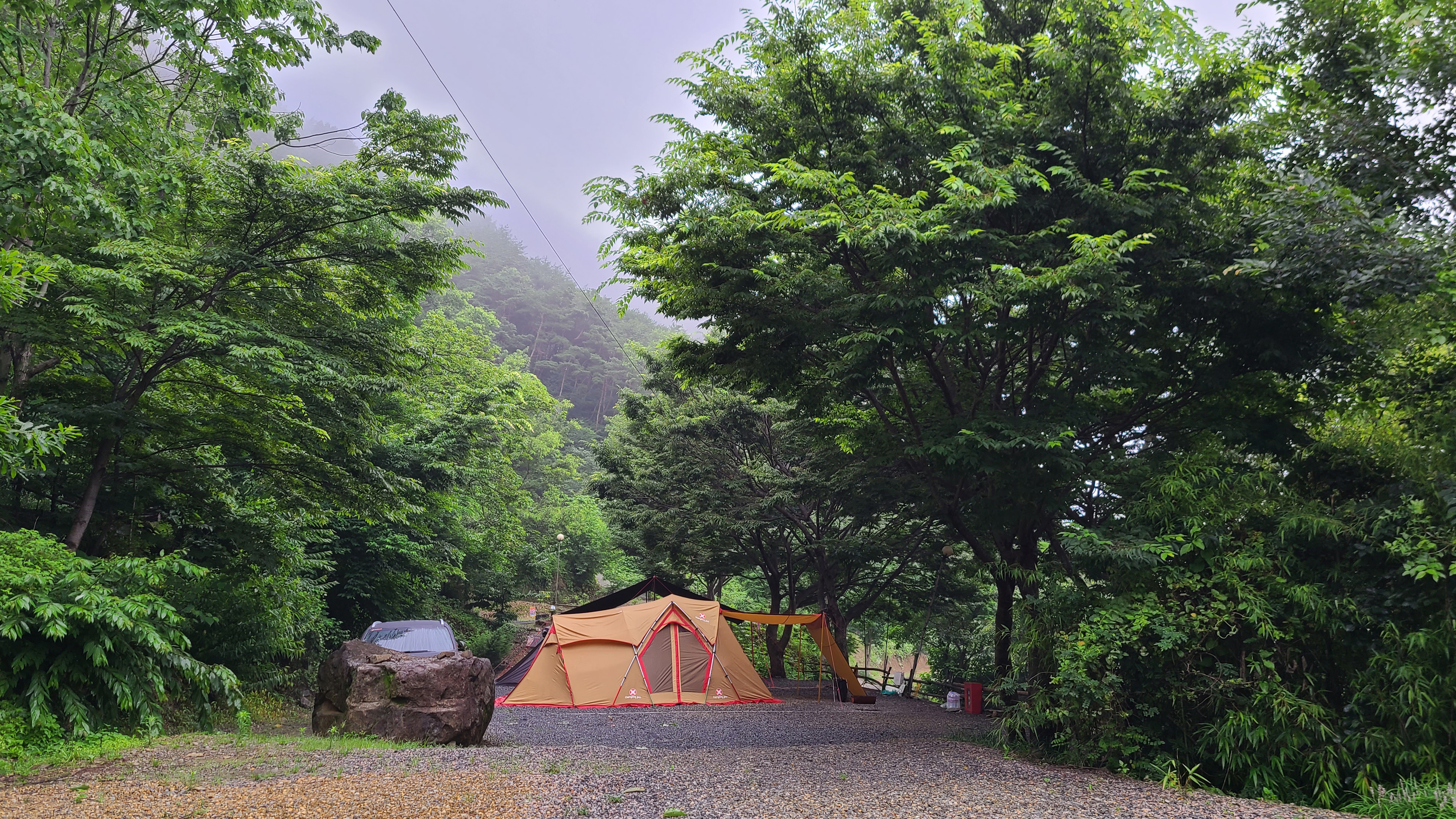 한 방울의 빗방울도 안 맞은 것은 아니지만 우중캠핑은 아니다.