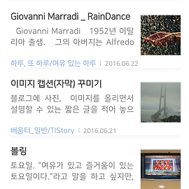 HTML14 위로 가는 버튼 화면에 떠 다니는 버튼을 클릭하면 페이지의 가장 위로 이동된다. 처음에는 CSS만으로 적용해서 사용을 했는데 클릭시 화면이 그냥, 막, 순신간에 위로 이동되어 버려 재미?가 없어 제이쿼리_jQuery 를 함께 적용해서 부드럽게 화면이 바뀌면서 위로 올라가는 모습으로 바꾸었다. 오른쪽에 있는 위쪽 화살표의 버튼을 클릭! HTML CSS /* 위로 가는 버튼 */ #top a { position:fixed; bottom:5px; right:15px; z-index:5; font-size:30px; color:#fff; text-shadow:rgba(0, 0, 0, 0.3) 1px 1px 2px, rgba(0, 0, 0, 0.3) 0 0 10px;" } 배움터_일반/TIStory 2016. 7. 13. 휴대폰에서 토글버튼 클릭시 나타나는 메뉴. 반응형 스킨 #1이 컴퓨터에서 보여지는 메뉴들이 휴대폰에서는 나타나지 않아 휴대폰 화면에서도 보여지게 만들었다. 스킨 #1에서 토글버튼을 누르면 카테고리 리스트만 나타나지만 지금은 최근 글과 최근 댓글, 관리자 메뉴, 날짜, 방문객이 나타나도록 했다. HTML 카테고리 방명록 최근에 올라온 글 최근에 달린 댓글 글쓰기 관리자 로그인 오늘: , 어제: , 손님: REMEMBER 20140416 CSS /* ##### mobile_메뉴 */ .mbox_aside { display:block; width:100%; height:auto; margin:0; padding-top:17px; } .mbox_aside h5 { width:auto; margin:0; padding:5px 5px 1px 15px; fo.. 배움터_일반/TIStory 2016. 6. 29. 티스토리의 꾸미기 중에서... 티스토리의 스킨을 만들 때 필요한 기능적인 부분을 일단은 적어놓고 나중에 필요하면 적용을 시켜봐야겠다. 1. 스크롤바의 움직임에 따라 헤드_header 부분이 숨겨지는 기능인데 꼭 헤드부분만 숨겨지는 것이 아니라 원하는 부분_div도 가능하다. 2. 숨겨지는 헤드 바탕에 이미지를 적용해 단순해진 블로그에 작은 감정이라도 느껴지도록 했다. 3. 모바일 화면에서 나타나는 버튼을 클릭하면 레이어_Layer가 나타나는 기능으로 일반적으로 여기다 카테고리를 집어넣어 현재의 블로그처럼 사용하는데 소스가 다르다. ≡ ≡ 오늘: , 어제: , 손님: REMEMBER 20140416 설명과 지료가 있는 곳이다. : http://brilliantcoding.xyz/entry/Jquery-%EC%A0%9C%EC%9D%B4%.. 배움터_일반/TIStory 2016. 6. 26. 반응형 스킨 '#1'의 토글버튼을 바꿨다. 티스토리의 반응형 스킨 #1의 휴대폰 화면에서 나타나는 토글버튼의 위치를 바꿨다. 오른쪽 위에 있는 버튼을 동작시킬려고 하니 오른손까지 움직이는 귀찮으즘이 생겨 왼쪽의 아래쪽으로 옮겼다. 되도록이면 왼손만으로 움직이는 버릇의 게으름이 있어 다시 전에 사용하던 방법을 적용시켰다. 바뀌는 블로그의 분위기에 맞게 색도, 크기도 멋대로 바꾸기 쉽다. HTML ≡ CSS @media only screen and (max-width:820px) { .area_head .btn_menu { display:block; overflow:hidden; position:fixed; left:7px; bottom:-5px; text-align:center; font-size:45px; color:#fff; text-shado.. 배움터_일반/TIStory 2016. 6. 24. 글쓰기에서 공백처리... 티스토리의 스킨 '#1'에서 '제목과 내용'이 함께 나오는 메인 화면의 리스트에서 글자와 단어 사이의 간격이 이상하게 보여 확인에 확인을 하다가 보다가 알게 된 사실이다. /* 티스토리의 에디터, HTML 화면속의 글자와 태그 모습 */ 커피숍 특유의 커피향 속에 달달한? 향기 _빵 냄새?_ 가 함께 묻어 있는 공간의 커피숍이다. /* 티스토리의 블로그 화면에서의 글자 모습 */ 커피숍 특유의 커피향 속에 달달한? 향기 _빵 냄새?_ 가 함께 묻어 있는 공간의 커피숍이다. /* 'white-space' 속성으로 보면 2칸이 띄어져 있는 글자 모습 */ 커피숍 특유의 커피향 속에 달달한? 향기 _빵 냄새?_ 가 함께 묻어 있는 공간의 커피숍이다. 위와 같은 현상이 정상인지, 오류인지 알 수가 없지만 티스토.. 배움터_일반/TIStory 2016. 6. 18. 블로그의 글꼴을 정하자. 어제 저녁에 티스토리의 블로그의 글꼴을 다시 바꿨다. 특별한 이유보다는 컴퓨터와 휴대폰에서 보여지는 글꼴이 똑같고, 글자 주변의 뿌옇 그림자? 현상이 나타나지 않고, 글꼴 자체도 마음에 들어서다. 마음에 드는 글꼴을 찾기 위해 하루를 소비하다가 전에 한 번 본 기억이 있는 글꼴이 생각나 다시 찾아서 변경을 했다. 렉시 새봄R 티스토리의 블로그에 '렉시 새봄R 웹폰트' 설치와 적용법을 가르켜 주고 있는 곳이다. : https://www.cmsfactory.net/node/11354 내 블로그에도 가르켜 주는 그대로 적용시켰다. 따로 손을 댈 필요가 없다. /* style.css 글꼴 태그 적은 후 */ @font-face { font-family: ls; src: url('./images/LexiSaebo.. 배움터_일반/TIStory 2016. 6. 17. Tistory _ 카테고리의 다른 글 Tistory_카테고리의 다른 글 Tistory_카테고리의 다른 글_소스(css) /* # 카테고리의 다른 글 */ div.another_category { width:auto; margin-top:2rem; margin-bottom:1rem !important; padding:0 !important; border:0 !important; } /* '카테고리의 다른 글' 전체 부분 */ div.another_category h4 { margin:0 !important; padding:1rem .5rem 1rem .5rem !important; font-size:1.2rem !important; background-color:#fafafa !important; }/* '카테고리의 다른 글'_글자 */ di.. 배움터_일반/TIStory 2016. 1. 8. 이전 1 2 다음